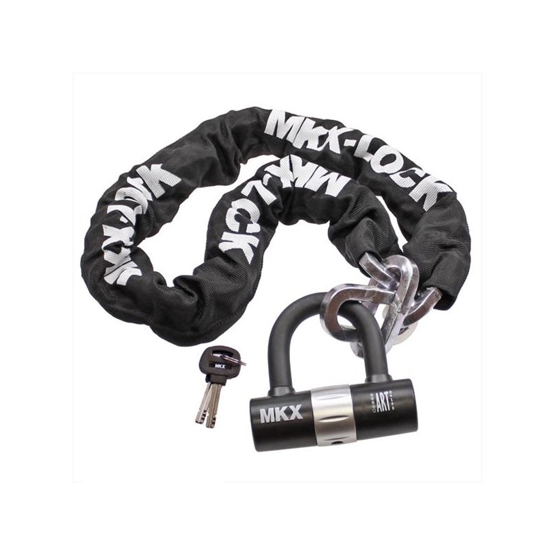 Dit MKX kettingslot met U-Lock is een 4 sterren ART goedgekeurd slot. De lengte is 120cm en het slot voorzien van een sleutel slot met bijbehorende 2 sleutels. Het U-lock met een beugel dikte van 14mm
